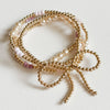 Elevate your bracelet collection with this refined Bow Gold Filled Bracelet, a timeless piece that brings understated elegance to any stack. Crafted from premium 14k gold filled beads, this bracelet combines durability with luxury appeal. The double-strung elastic construction ensures longevity, so your accessory maintains its beauty through daily wear. Designed with a snug, fitted fit to keep the delicate bow perfectly positioned against your wrist, preventing unwanted movement. Whether worn solo or layered with complementary pieces, this sophisticated bracelet adds a touch of refined femininity to your personal style. The gold filled material resists tarnishing, making it an investment piece that remains radiant season after season.