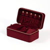 This elegant two-layer jewelry organizer combines functionality with refined aesthetics, making it an essential addition to any dresser or vanity. Measuring a compact 18x9.6x7.5 cm, it slides seamlessly into drawers without compromising your décor. The thoughtfully designed interior maximizes storage capacity across multiple compartments. The top tier features five strategically placed hooks for hanging delicate necklaces and bracelets, while the removable middle section includes a dedicated stud grid for earrings and a specialized ring roll to keep rings organized and accessible. The spacious bottom compartment accommodates smaller pieces, cufflinks, or sentimental keepsakes. Crafted with premium velvet lining both inside and out, this organizer provides superior protection against scratches and dust while maintaining a luxurious feel. The sturdy MDF core ensures durability, while the sophisticated gold buckle closure adds both security and an understated decorative touch. Perfect for the modern woman who values both style and organization, this jewelry box makes a thoughtful gift for Christmas, Valentine's Day, birthdays, Mother's Day, or any special occasion. Whether for yourself or a cherished friend, it transforms jewelry storage into a beautiful display of personal elegance.
