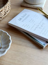 Introduce a moment of mindfulness to your day with this daily wellbeing notepad. The perfect bedside table or desk accessory to pause, reflect and reset. Each notepad includes a mood tracker, daily gratitude section and self care planner - a gentle reminder to prioritise yourself. Details: - Small A6 size (148mm H x 105mm W) - 50 tear off pages - Super thick backing board - 120gsm premium paper - FSC Certified paper stock - Gender neutral design Designed by AIM Studio Co. Printed in Northamptonshire, UK using FSC certified materials.