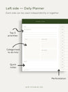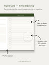 The ultimate 2 in 1 desk planner for optimising productivity and time management. This A4 landscape notepad features a perforated centre line; a daily to do list on the left and a time blocking planner on the right.