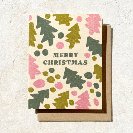 Merry Christmas Tree Card | Playful Holiday Card | Pink