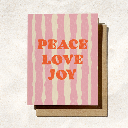 Peace Love Joy Pink Stripe Card | Seasonal Holiday Card | Pinkmas
