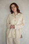 Effortlessly elevate your loungewear with the Lany Button Down, crafted from sumptuous French terry that feels as luxurious as it looks. This sophisticated piece features a relaxed silhouette perfect for leisurely days at home or casual outings, while the button-front design adds refined polish to your everyday wardrobe. The soft, breathable fabric drapes beautifully and moves with you, making it an ideal layering piece for any season. Pair it seamlessly with our Lany Pants to create a coordinated set that balances comfort with understated elegance.