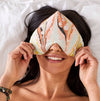 This eye love pillow in a heart shape hugs your face perfectly. Hand marbled organic cotton with a raw silk backing. Filled with organic flaxseed and lavender. You can heat for 30 seconds in a microwave for comfort or chill in the freezer for a lovely cooling effect.